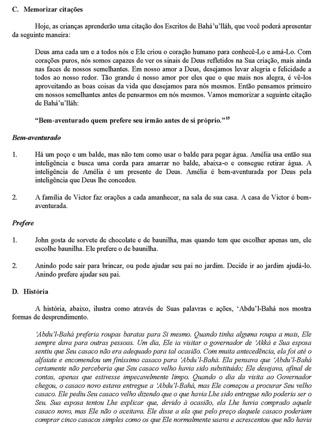 Este é um exemplo de lição que os professores usam em aulas para crianças Série 1 e explora o tema de abnegação.